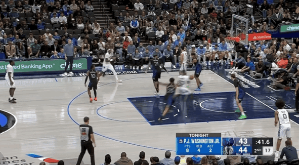 次节比赛开始,布兰登-威廉姆斯突破挑篮,克莱三分命中,GG-杰克逊突破抛投,文斯-威廉姆斯上篮得手。克莱连得5分,波普三分回应,灰熊打出一波7-0高潮反超比分。马绍尔连续造成犯规4罚全中,华盛顿个人连得6分,普罗斯珀反手上篮,华盛顿暴扣得分,加福德挑篮打进2+1。半场比赛结束,灰熊43-47落后独行侠。