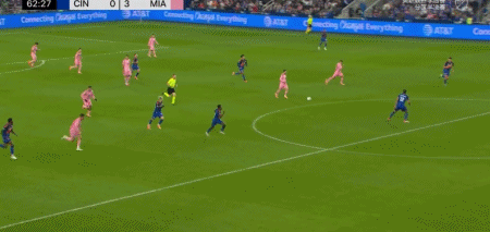 开场仅19分钟,梅西便用不多见的头槌破门方式,为迈阿密国际早早取得领先,吃下“定心丸”。