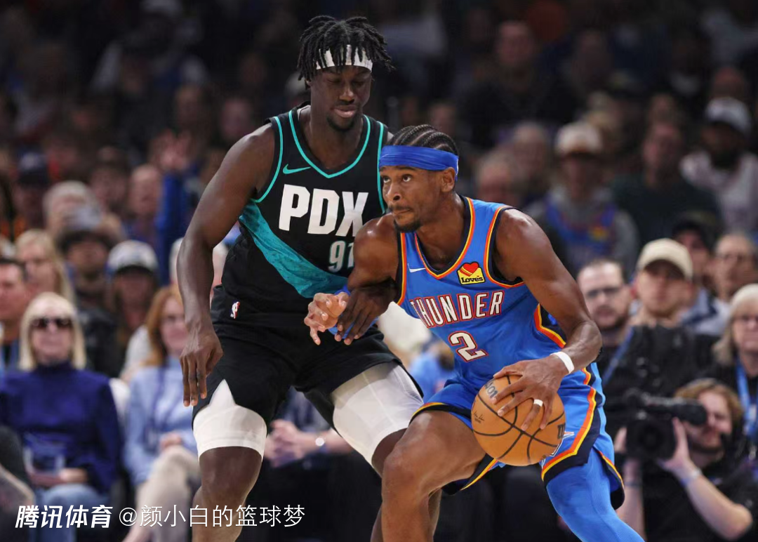 这场比赛克林根首节早早2次犯规,里斯的状态非常糟糕,这让杨瀚森首节获得了1分钟的登场时间,他有幸在场看到亚历山大的攻防表演,SGA首节打满12分钟,7中6+罚球5中5拿到17分1篮板1助攻2抢断,个人得分险些比开拓者全队还多。