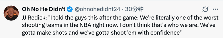 随后,雷迪克也说道:“赛后我跟队员们说‘我们现在是全联盟投篮最差的球队之一’,但我觉得这不是我们的真实水平,我们得把球投进,而且要带着自信出手。”