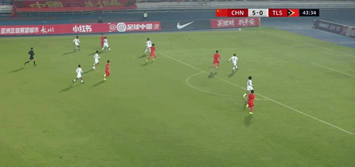 第44分钟,万项射门被封堵,谢晋补射完成梅开二度,中国队6-0。