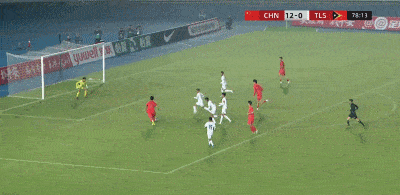 第78分钟,赵松源头球吊射完成梅开二度,U17国足12-0领先。