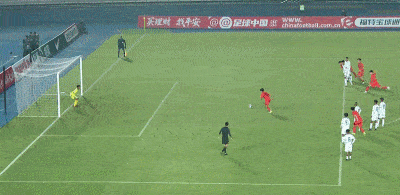 第9分钟,U17国足连续3波攻势,谢晋最后补射击中边网。