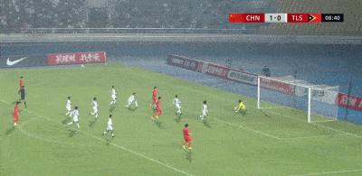 第54分钟,王贺毅下底传中,帅惟浩门前捅射破门梅开二度,U17国足8-0东帝汶。
