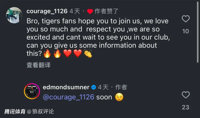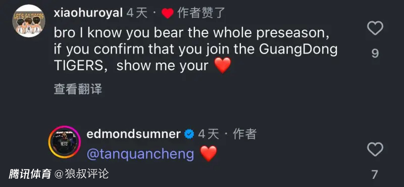 此前,萨姆纳在社媒当中,回应广东网友是否加盟广东宏远俱乐部的话题。