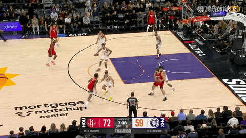 易边再战还剩11分16秒时,迪龙接布克助攻转身跳投命中,把比分追到59-52;第三节还剩10分59秒时,谢泼德外线三分命中,火箭立即回应到62-52。此后两队在内线展开对攻。第三节中段,还剩7分8秒时,小史密斯接阿门助攻空切扣篮命中,将比分改写为74-59。节末阶段,亚当斯、J.D.戴维森和申京先后在篮下取分,三节战罢火箭84-75继续占据上风。