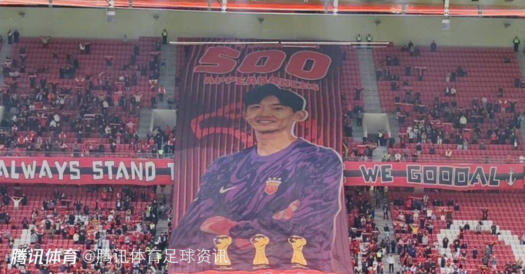 画面主体是海港门将颜骏凌的肖像,并配有“500”字样,用来致敬他为俱乐部在正式比赛中累计出场达到500次的重要时刻。