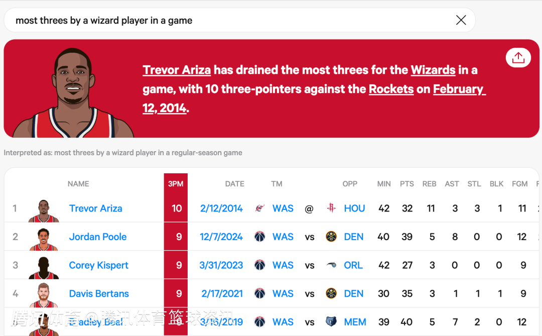 投中10记三分球!麦科勒姆追平奇才队史纪录 单场三分球上双历史第5多