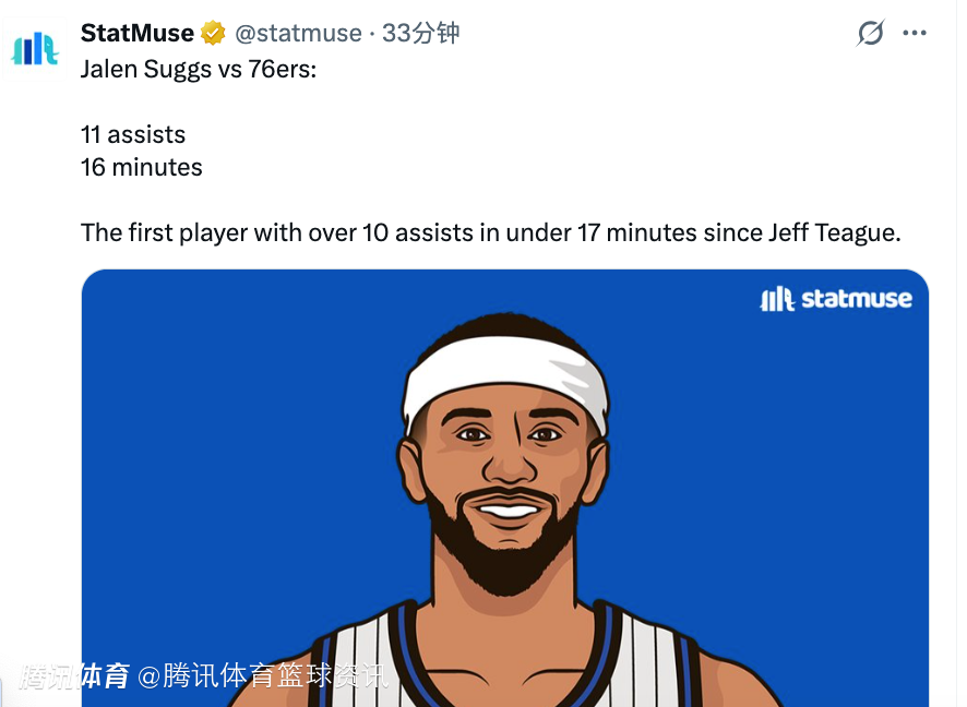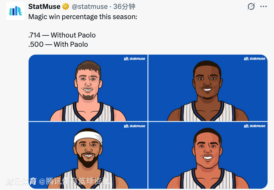 值得一提的是,本场比赛魔术核心班凯罗继续缺席,据统计,在本赛季班凯罗出战时,魔术的胜率仅为50%,但他缺席时,球队的胜率高达71.4%。