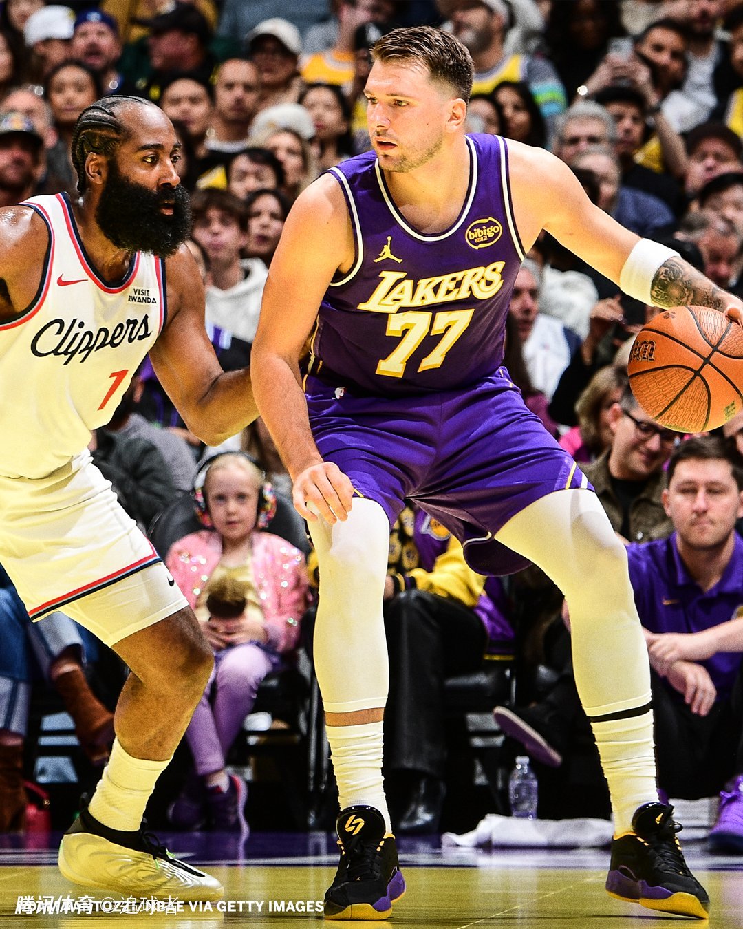 NBA迎来万众瞩目的洛城德比,而且这是一场关于杯赛排名的关键战,东契奇和詹姆斯带领湖人大战快船,詹姆斯开场组织进攻,东契奇与哈登直接对位,面对哈登的防守,东契奇打疯了。