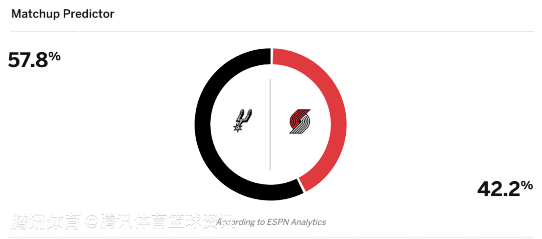 马刺57.8%,开拓者42.2%