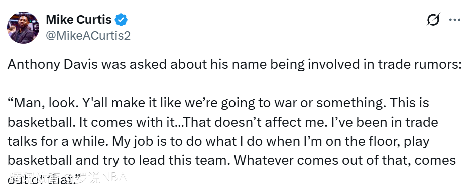 浓眉回应了相关猜测,表示自己的注意力全在篮球上。