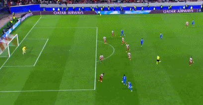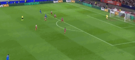36分钟,巴尔韦德右路横敲,琼阿梅尼远射击中横梁。