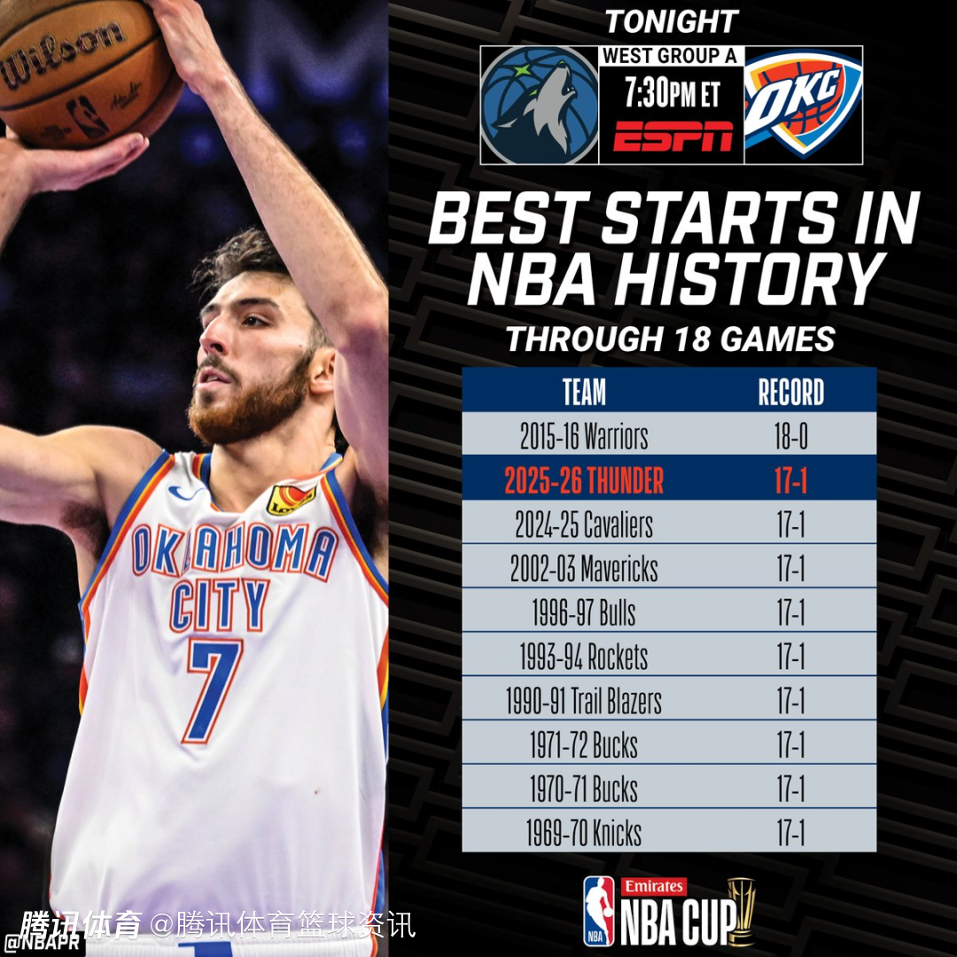 2025-11-27 07:50北京时间11月27日, NBA杯小组赛继续进行,雷霆主场迎战森林狼,冲击10连胜。截至目前,雷霆已经取得17胜1负的战绩,比肩历史上的多支劲旅。