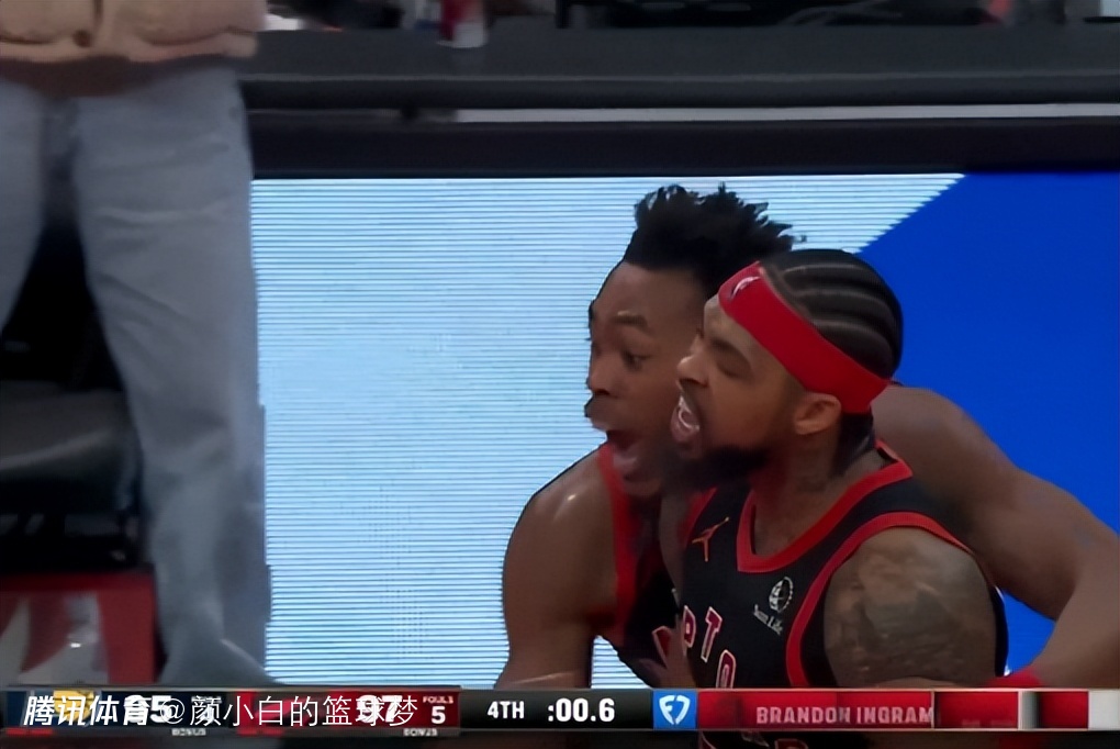 英格拉姆完成这个0.6秒中投准绝杀后表情那叫一个嚣张,斯科蒂-巴恩斯也也在一旁怒吼庆祝,这个准绝杀后猛龙已经豪取9连胜。