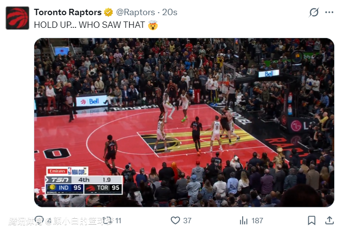 2025-11-27 11:30北京时间11月27日,NBA杯赛,猛龙VS步行者,这场比赛最后时刻两队95-95,猛龙核心布兰登-英格拉姆持球面对西亚卡姆,他的一个急停晃掉了西卡的身位,英格拉姆中投冷血命中,只给步行者留下0.6秒,准绝杀成功!猛龙97-95险胜步行者豪取9连胜,也是杯赛的4连胜。