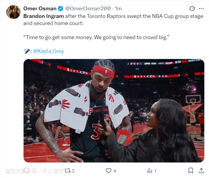 赛后英格拉姆接受采访谈到晋级杯赛八强,孩子是一个性情中人,他直言:我们已经赢得了一大笔钱,现在我们要去赢得更多的钱。