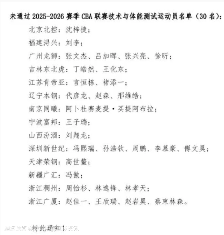 2025-11-27 13:10北京时间11月27日,据媒体人江南的城报道,本次CBA体测,共有30名球员未通过,需要补测,沈梓捷、周鹏、徐昕在列。