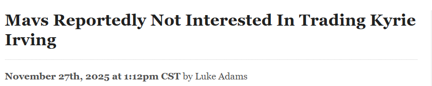 2025-11-28 05:20北京时间11月28日,随着哈里森被解除管理层职务后,战绩挣扎的独行侠队深陷交易流言漩涡,ESPN记者麦克马洪在最新一期的播客节目中表示,控球后卫凯里-欧文并非2025-26赛季的主要交易候选人。