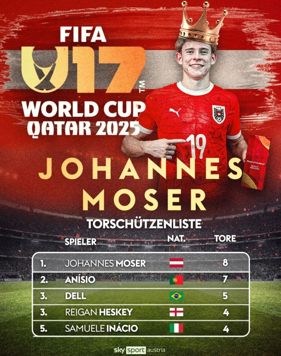 2025-11-28 10:40撰稿/寒冰时隔34年,葡萄牙终于再次成为世界冠军:几内亚比绍裔中锋阿尼西奥第32分钟的一蹴而就,让葡萄牙队首次进入U17世界杯决赛就拿到冠军奖杯。这是继两个U20世界杯奖杯(1989和1991年)之后,葡萄牙拿到的第三个低龄组世界冠军,也是今年继U17欧洲杯后,他们拿到的第二个U17大赛奖杯。