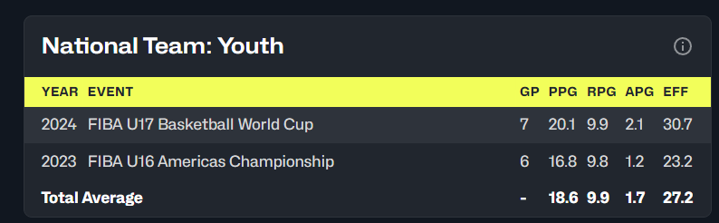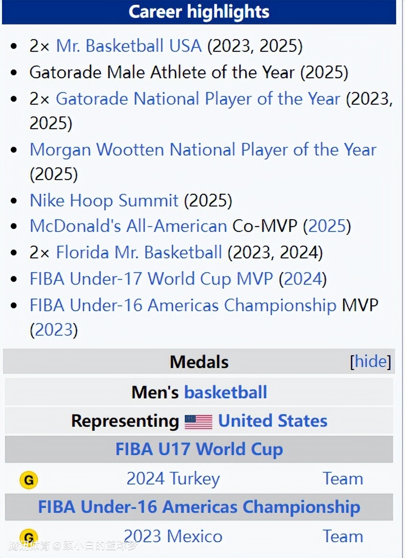 布泽尔是U16美洲杯MVP、U17世界杯MVP,2023年/2025年全美篮球先生,他中学时代就已经享誉全美。