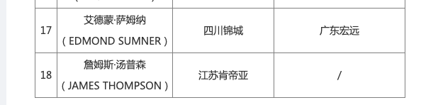 2025-11-28 17:20北京时间11月28日,CBA官网显示,广东男篮得到前四川小外萨姆纳的优先续约权。目前广东男篮已经集齐四名外援,分别是萨姆纳、奎因、麦考尔和萨林杰。
