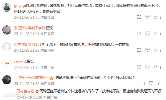 赛后,涉及到这一支中国男篮人员分配和战术布置引发热议。