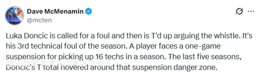 东契奇首节争论判罚吃技犯!本赛季已累计3次 距“禁赛线”差13次