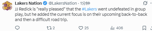 2025-11-29 15:00北京时间11月29日,NBA杯赛继续进行,湖人队129-119击败独行侠队。赛后,湖人队主教练雷迪克接受媒体采访。