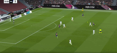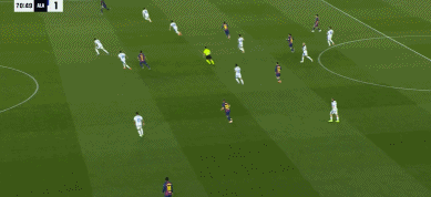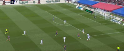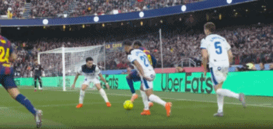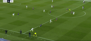 71分钟,孔德倒三角传球,奥尔莫斜射远角稍偏。