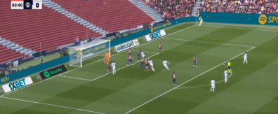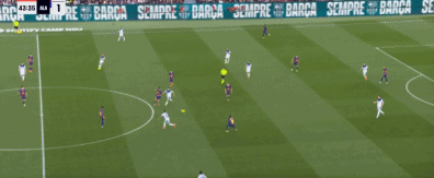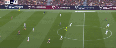 43分钟,亚马尔假射真扣,盘过门将推射击中立柱。