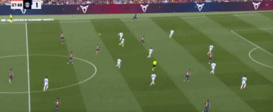 65分钟,佩德里分球,亚马尔禁区外兜射打高。