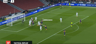 57分钟,奥尔莫开出角球,莱万甩头冲顶被门将封出。