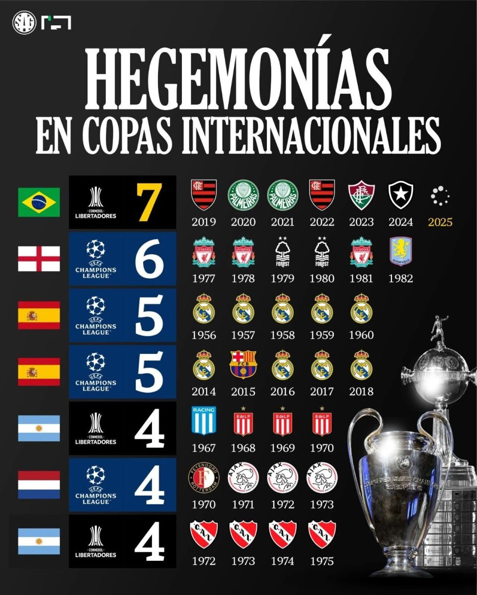 解放者杯七连冠,巴西俱乐部制霸南美!