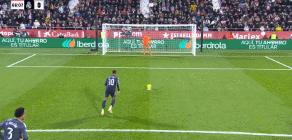 第65分钟,维尼修斯左翼突入禁区被林孔放倒,主裁判罚点球,姆巴佩主罚点球低射破门,1-1。
