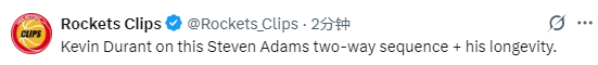 杜兰特盛赞亚当斯:10年过去还能站在场上打出当年表现 他的职业态度太硬核