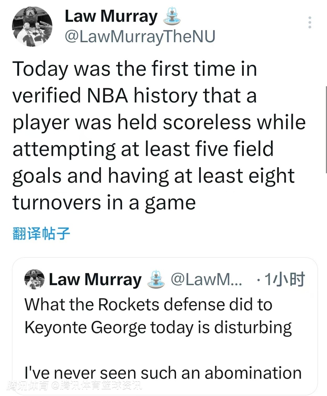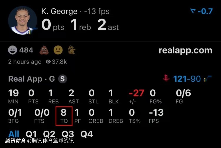 记者Law Murray撰文表示:“火箭对乔治的防守堪称窒息!我从未见过如此骇人的压制场面——这是NBA历史上首次出现球员单场至少5次出手、狂送8次失误,却一分未得的尴尬纪录!”