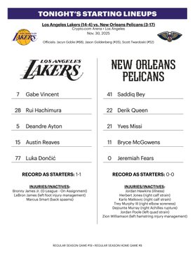 湖人vs鹈鹕首发出炉:东契奇里夫斯带队出战 文森特顶替詹姆斯首发