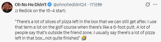在谈到湖人队15胜4负的开局时,雷迪克表示:“现在能以15胜4负的战绩坐在这里,确实可以说结果很棒。这是个很棒的开局,我们应该为此感到自豪。但这盒披萨里还有很多块没吃完,我们之后仍有很多可以争取的空间,球队还有很大的提升余地。对我来说,这是件积极的事,绝对是积极的。”