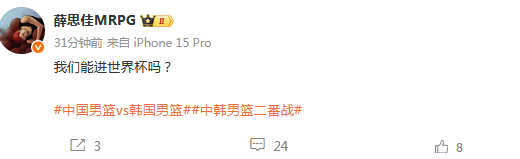 博主“后厂村体工队”发文点评“世界上没有一场复制的比赛,中国男篮确实没有复制上一场,因为输得更多了!从最终的比分上看,好像还可以?但半场落后23分,三节落后28分,这样的坑如何能爬得出来? ”