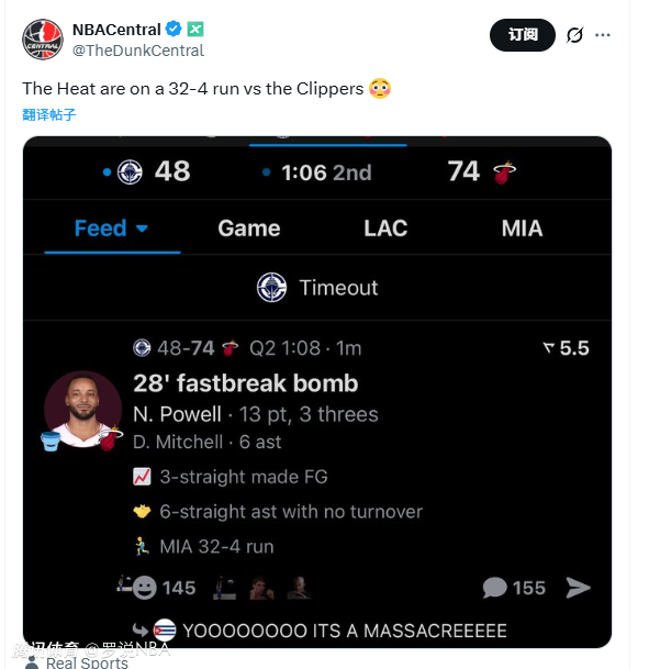 2025-12-02 10:00北京时间12月2日,快船和热火的比赛打完半场,快船56-76落后20分。在第二节还剩7分14秒时,快船44-42领先热火,但随后被热火打出一波32-4,最多落后26分。近15场输掉13场的快船,看上去又要崩盘了。