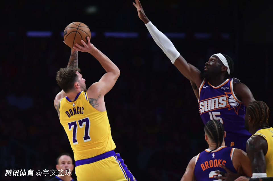 首节比赛,东契奇抛投打进,率先为湖人取得首次运动战进球。东契奇开局就展示不俗的进攻欲望,连续抛投得分,频繁突破给对手内线施加压力,太阳完全没有阻挡东契奇的方法。