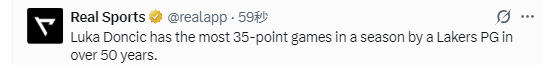 东契奇本赛季第10次单场35+ 创湖人近50年控卫纪录