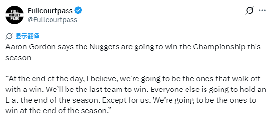冠军的心!戈登:所有球队都会铩羽而归 掘金会成为本赛季笑到最后的冠军之师