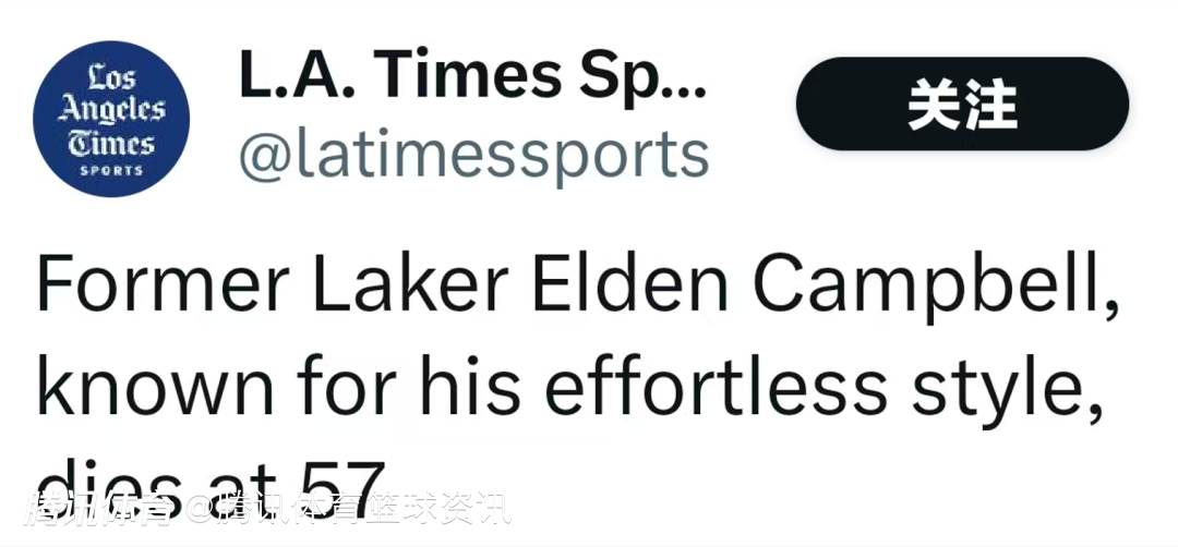 2025-12-03 14:40北京时间12月3日,前湖人队中锋埃尔登-坎贝尔逝世,享年57岁,目前死因尚未公布。坎贝尔在其15年的NBA生涯中为湖人效力了8个半赛季,这里是他成长的地方,他曾就读于莫宁赛德高中,自幼便是湖人队的球迷。