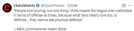 萧华表示:“人们喜欢看得分,但我认为联盟有时在进攻端的调整可能有些过度了,因为球迷显然也同样热爱防守,他们想看充满对抗性的防守。”