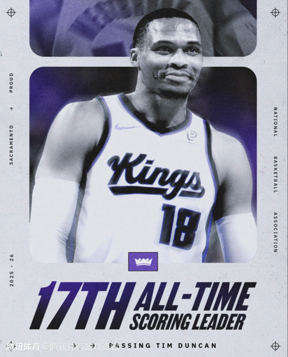 2025-12-04 10:10北京时间12月4日,NBA常规赛,国王客场对阵火箭,威少在第二节比赛中空切上篮打进,得到本场比赛的第8分,个人生涯总得分超越邓肯。