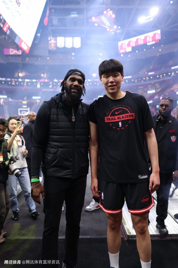 赛前,杨瀚森和前NBA状元郎奥登一同互动,两人互比手掌大小,随后也一同合影留念。