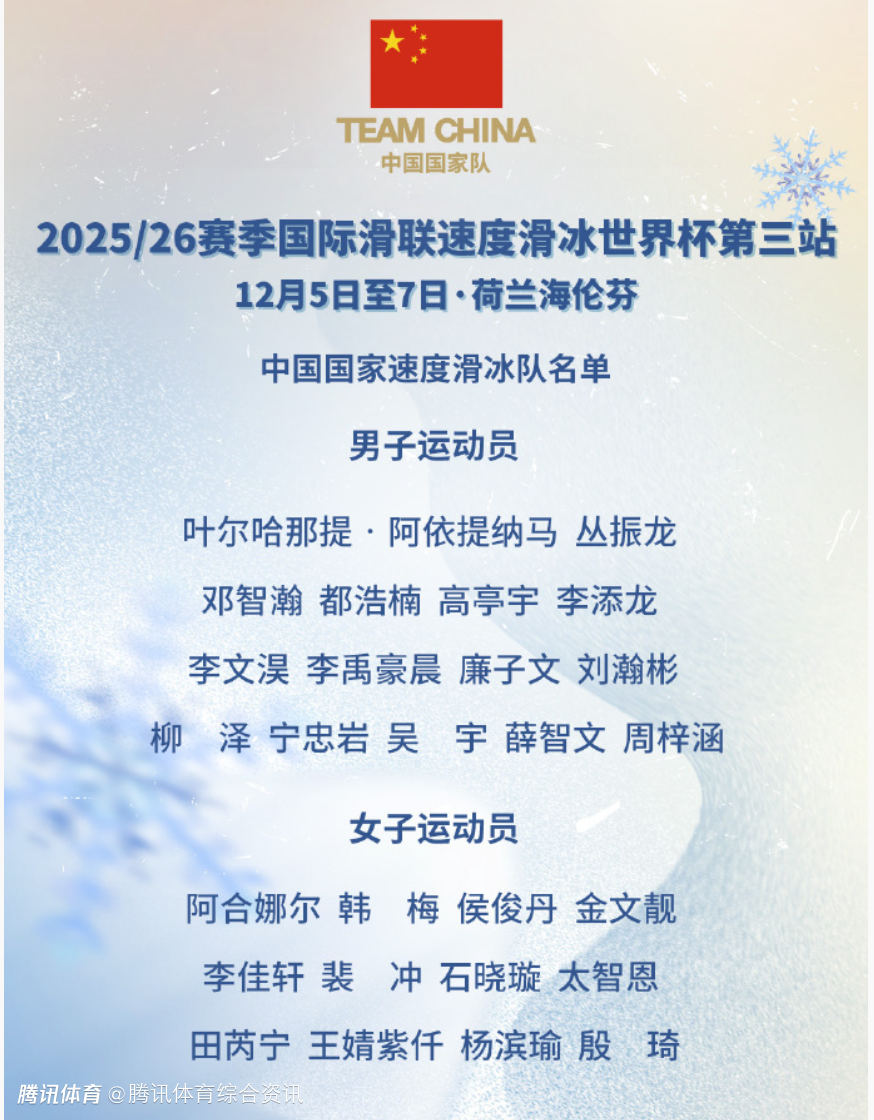 2025-12-04 11:30北京时间12月4日,2025-26赛季国际滑联速度滑冰世界杯第三站将于12月5日至7日在荷兰海伦芬举行。中国队参赛名单出炉,宁忠岩、高亭宇领衔男运动员名单;韩梅、李佳轩领衔女运动员名单。