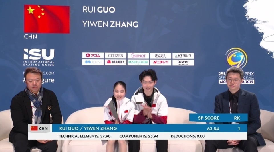 花滑总决赛开战!青年组双人短节目中国揽前二:郭蕊/张益文领跑